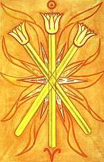 Avec l'énergie du feu de la vie, je créée et j'avance sans cesse. Je suis visionnaire au delà des frontières terrestres et je vous révèle ce que vous avez à savoir... Les cartes de baguettes magiques sont gouvernées par l'élément Feu. Elles ont à voir avec la créativité, l'énergie créative, l'intuition, mais elles sont aussi en rapport avec le corps. Ces cartes traduisent une détermination farouche, une volonté et un esprit forts et une source inépuisable d'énergie pour agir, aller de l'avant.Il y a aussi un aspect médical dans les cartes de baguettes magiques, mais qui renvoie plutôt à la nature, aux médecines naturelles. La saison en rapport avec les cartes de baguettes magique est l'été et la direction, le sud. Les signes astrologiques associés aux baguettes magiques sont les signes de feu : le bélier, le lion et le sagittaire. |